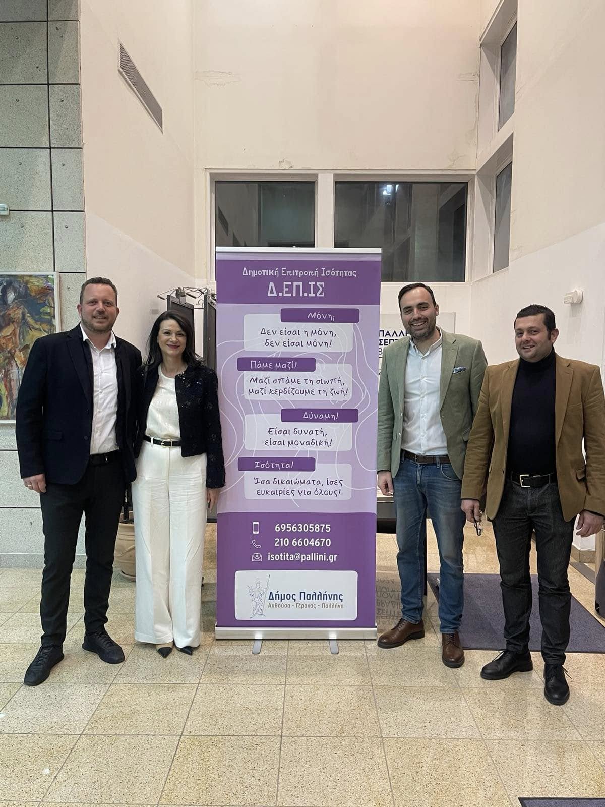 Μαζί με τα μέλη της Δ.ΕΠ.ΙΣ, τον Δήμαρχο Παλλήνης κ. Χρήστο Αηδόνη, την Ευδοκία Ράπτη και την Ασπασία Τζιτζικάκη, τίμησαν τη σημασία της ισότητας, της ενδυνάμωσης και της αναγνώρισης του ρόλου των γυναικών στην κοινωνία και τον επαγγελματικό χώρο.