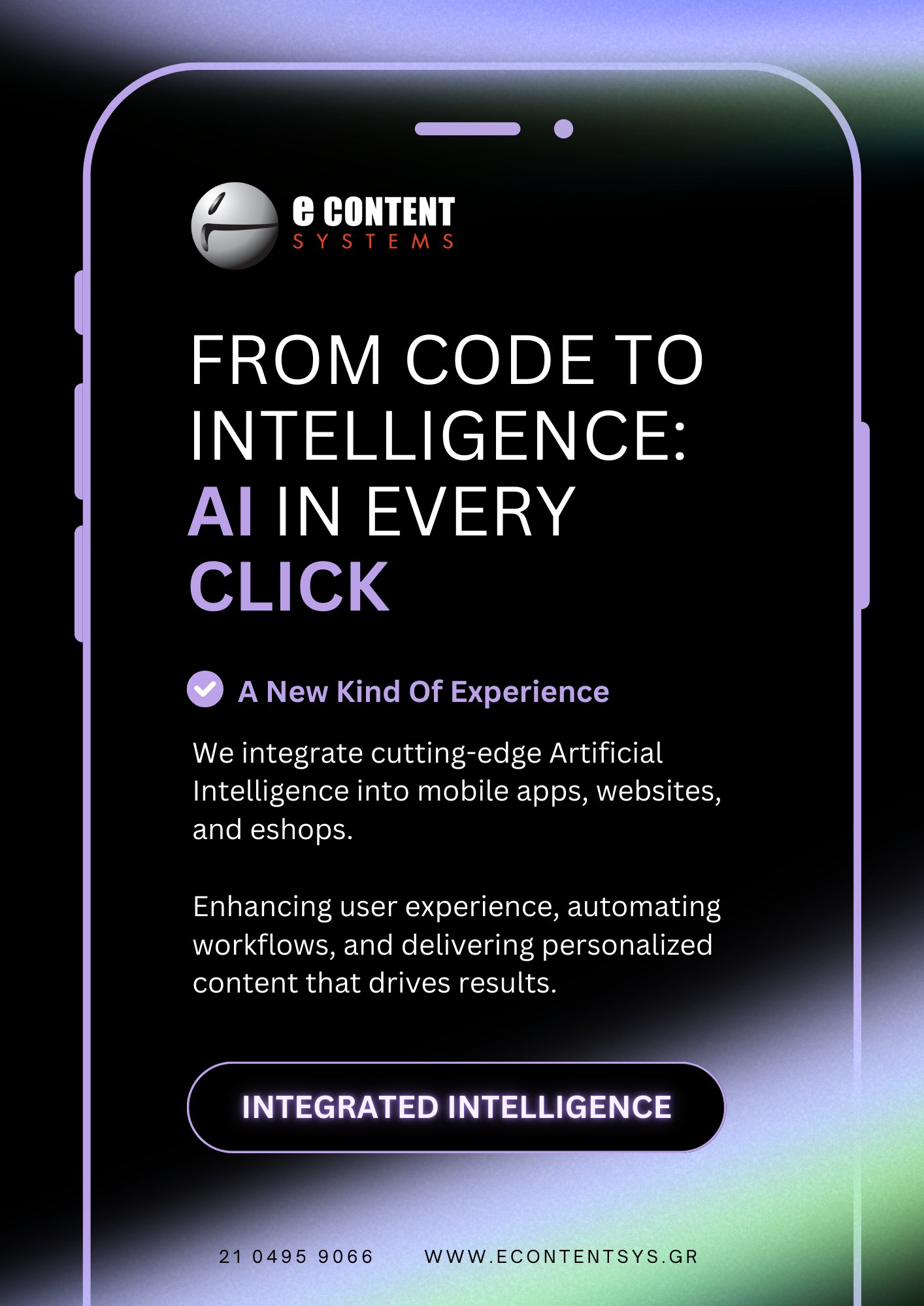 Δεν περιοριζόμαστε στην απλή κατασκευή κώδικα. Στην Econtent Systems, «εμποτίζουμε» τις mobile εφαρμογές, τα websites και τα eshops σας με νοημοσύνη. Στόχος μας είναι να μετατρέψουμε κάθε ψηφιακό σημείο επαφής με τον πελάτη σας σε μια έξυπνη, αποδοτική εμπειρία.